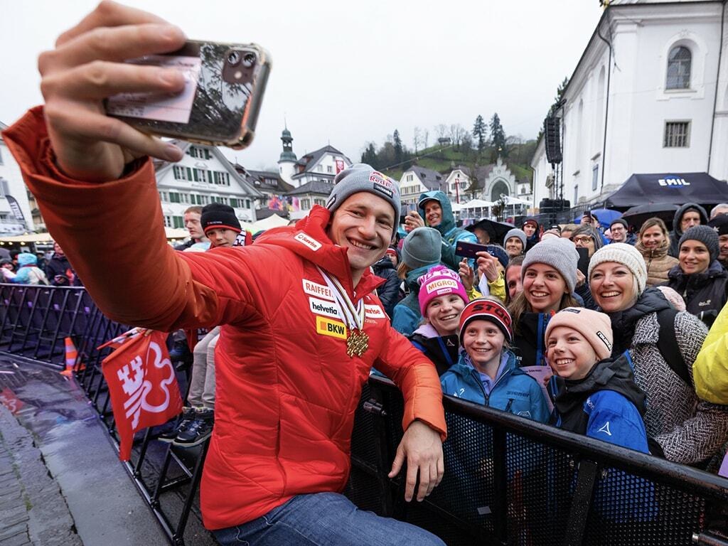 Marco Odermatts Heimatkanton Nidwalden feierte zu Ehren des Siegers des Gesamtweltcups 2023 und Doppelweltmeisters von Courchevel am Sonntagnachmittag ein grosses Fest auf dem Dorfplatz in Stans. Trotz Regen und Kälte versammelten sich Tausende Fans zu Ehren von Marco Odermatt im Hauptort des Kantons Nidwalden. Marco Odermatt wurde während eineinhalb Stunden mehrfach geehrt, von der Nidwaldner Politik, aber auch von Sportlerinnen und Sportlern. Die Ski-Legenden Pirmin Zurbriggen und Erika Hess waren vor Ort wie auch der Präsident von Swiss Ski, Urs Lehmann.