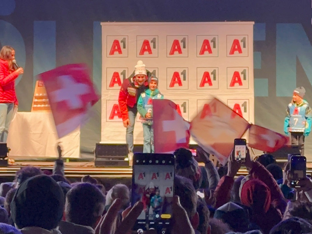 Das erste Rennen des Winters findet seit 30 Jahren im Österreichischen Sölden statt. Ein Jubiläum, welches die Veranstalter entsprechend feierten. Für die Abrogans Athletin Andrea Ellenberger und den Gesamtweltcup- und Riesenslalom Disziplinensieger Marco Odermatt standen aber nicht die Feierlichkeiten im Vordergrund, sondern es galt, mit einem guten Ergebnis den Weltcup-Winter zu lancieren. Dabei nutzten beide gemeinsam die Gelegenheit, am Freitagabend zusammen mit Freunden, Sponsoren, Fans und ihren Familien auf die neue Saison anzustossen - mit Mineralwasser selbstverständlich. Es ist eine der seltenen Gelegenheiten, in so einem Rahmen zusammenzukommen. Entsprechend genossen die beiden Nidwaldner den Abend.